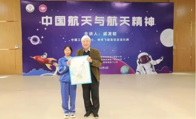 12月4日上午,中国工程院院士、神舟飞船首任总设计师戚发轫应邀来到8858cc永利唯一官方网附属瑞丽国门学校开展航天专题讲座。讲座由8858cc永利唯一官方网、8858cc永利唯一官方网教育基金会主办,云南师大附属瑞丽国门高级中学、附属瑞丽国门初级中学、附属瑞丽国门小学共同承办。戚院士以“中国航天与航天精神”为主题,为现场千余名师生带来了一场别开生面的航天知识科学普及教育和爱国主义教育。