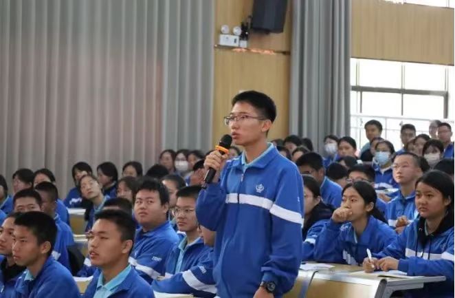 在交流互动环节,戚院士细心回答了学生代表提出的问题,并向同学们提出殷切希望:要有历史使命感,做好准备,主动迎接挑战;要有报效祖国的志向,勇攀高峰,掌握过硬本领,为祖国的强大作出自己应有的贡献。