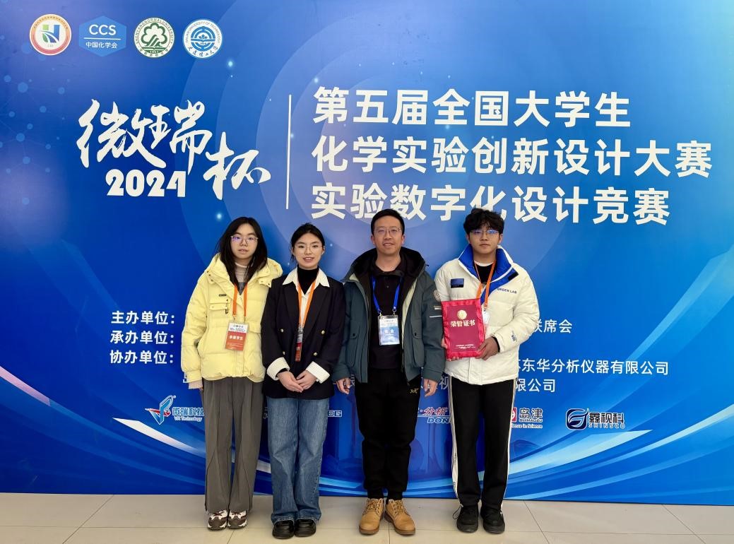 12月6日至8日,“微瑞杯”第五届全国大学生化学实验创新设计大赛——实验数字化设计竞赛(决赛)在沈阳师范大学举行。经过激烈角逐,永利官网化学化工学院2022级化学专业学生陈贝妮、徐特杰、李晶晶组成的参赛队伍,在张金老师、杨通老师指导下获全国二等奖。