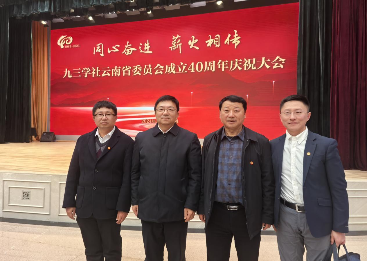 永利官网党委副书记降富楼,杨昆、翟波宇、郑永刚、罗毅参加了大会。杨昆、翟波宇、郑永刚三人获九三学社云南省委员会成立40周年“突出贡献奖”称号,罗毅获“云南九三青年科技创新英才”称号。