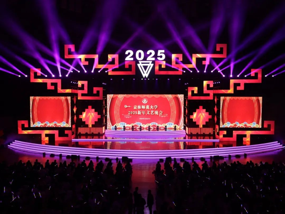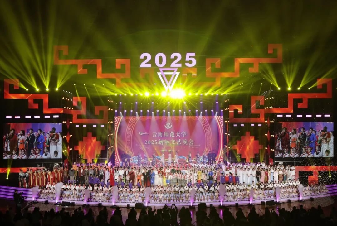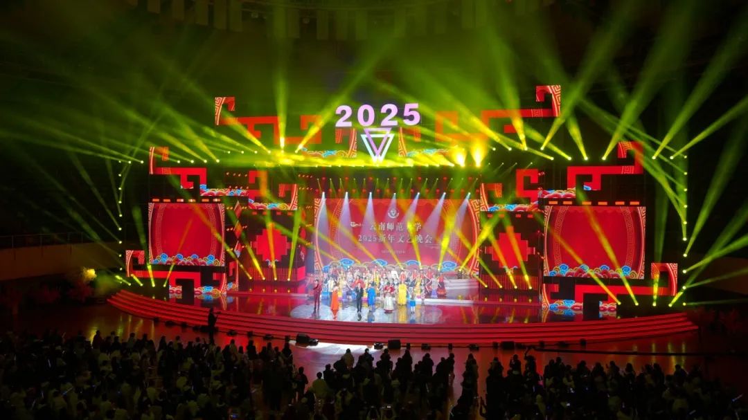 辞旧迎新,逐梦追光。12月27日晚,“云师大家庭”欢聚一堂,西区体育馆内欢声笑语,老教授们用歌声礼赞祖国,小朋友们热情起舞、活泼可爱,莘莘学子舞动青春、放飞梦想……8858cc永利唯一官方网2025新年文艺晚会在其乐融融氛围中缓缓拉开序幕。这是一次思政与艺术的融合碰撞,一场视觉与听觉的艺术享受,更是一堂老中青传承、大中小一体、中外学子齐聚的大思政课。活动分为《云岭·教泽润心》《双教·共育桃李》《筑梦·四海放歌》三个篇章。