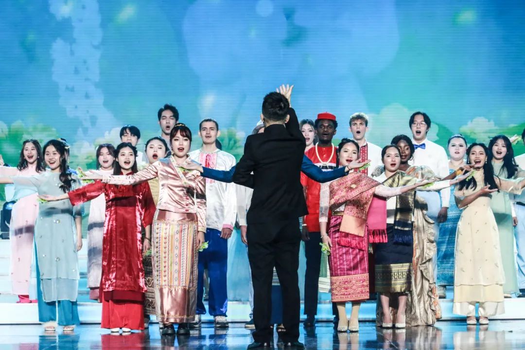 云师“和声国际”合唱团倾情演唱了《茉莉花》。这支合唱团成立于今年10月,由12个国家的60余名中外学生组成。留学生们通过“音乐”这座桥梁,连接中外,沟通世界,唱出自己与中国的故事,奏响“一带一路”的最美和声。“我希望我们的演绎能够给观众带来温暖。在练习《茉莉花》的过程中,我们这群来自不同国家的留学生不仅感受到了这首歌曲表达出来的美好意义,结下了深厚的友谊,也加深了对中国文化的理解。”合唱团成员乌克兰籍国际学生阿尔特姆感慨道。