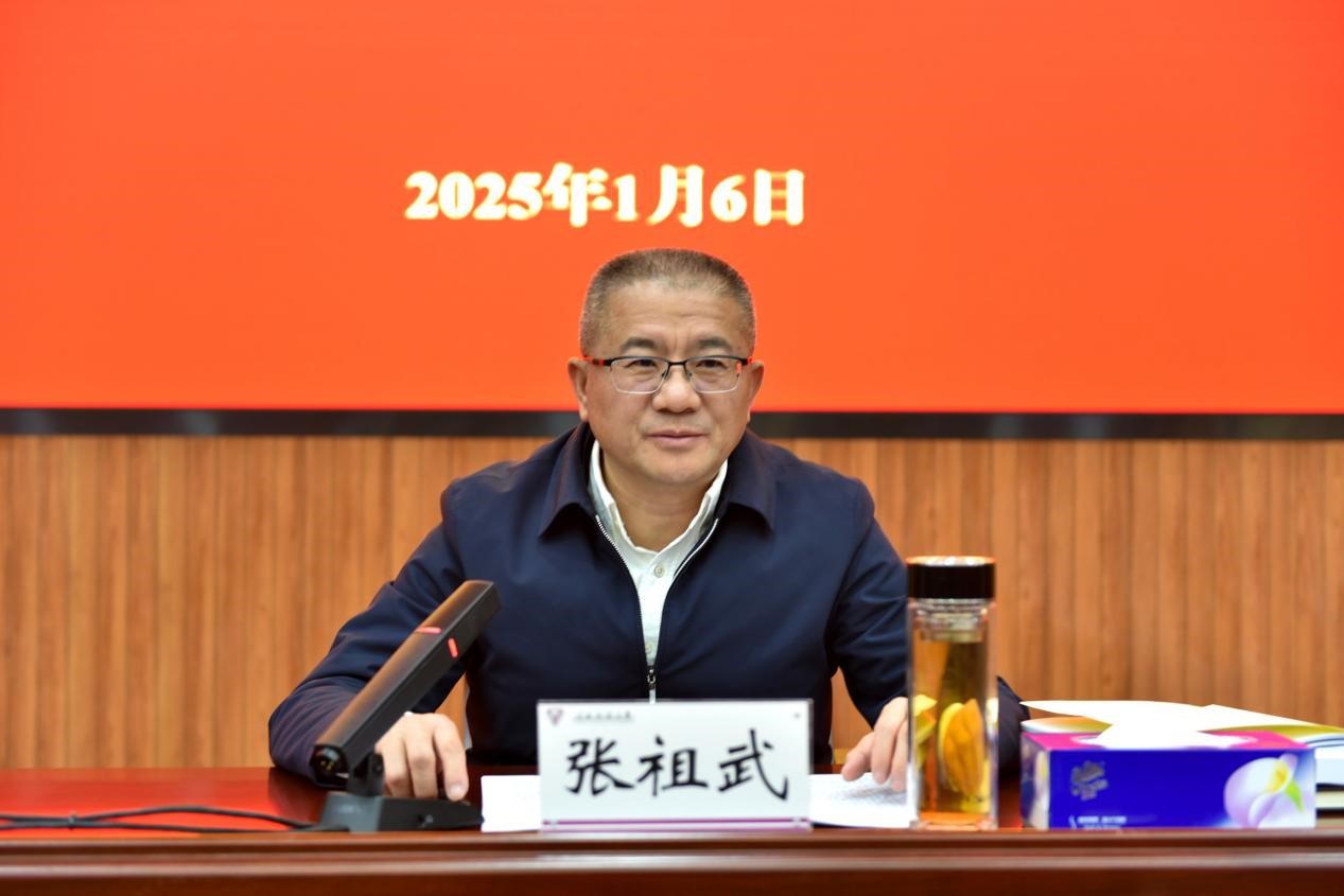张祖武强调,2025年是“十四五”规划实施收官之年、“十五五”发展谋篇布局之年,也是学校落实云南省教育高质量发展三年行动计划、全面深化改革向纵深推进、加快推进“双一流”建设、“151战略行动计划”的关键之年。全校各级党组织、全体党员干部务必保持清醒头脑,不断增强责任意识、底线意识,补短板、强弱项、扬优势,以说一件、干一件、成一件的真抓实干精神,奋力书写“教育强国,云师有为”的时代答卷。一是要持续深入学习贯彻党的二十大和二十届二中、三中全会精神,推进学校第十三次党代会目标任务落地落实;二是要压紧压实基层党建工作责任,推动基层党组织全面进步全面过硬;三是要不断深化教育综合改革,激发学校高质量发展的动力活力。紧紧围绕推进中国式现代化这个最大的政治,大力弘扬党的光荣传统和优良作风,积力之所举,众智之所为,将云师人的“小梦想”汇聚成学校发展的“大愿景”,将云师人的“微奋斗”凝聚成学校发展的“大合力”,为加快建设西部领先、辐射南亚东南亚的高水平师范大学,推进强国建设、民族复兴作出更大贡献。