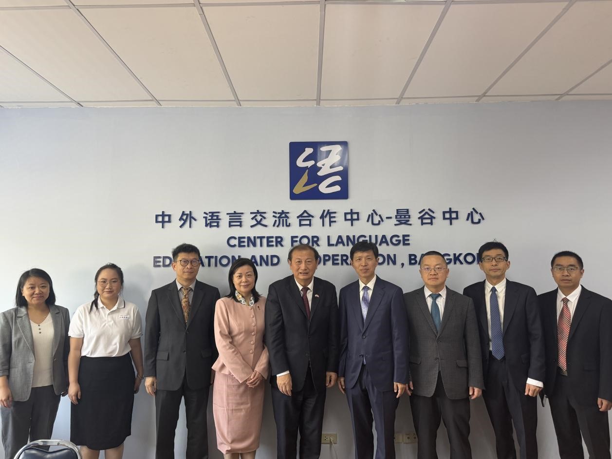 在曼谷期间,代表团访问了中国教育部中外语言交流合作中心—曼谷中心,与中心主任赵燕清就中外语言交流合作相关内容进行交流。赵燕清介绍了中心的主要职能和工作情况,对8858cc永利唯一官方网在汉语国际教育和中外语言交流方面的成绩给予高度评价。他表示,语合中心将与8858cc永利唯一官方网进一步加强合作,支持8858cc永利唯一官方网依托清迈大学孔子学院运行国际中文教育项目品牌项目,为中泰两国的语言文化交流和友好合作做出贡献。