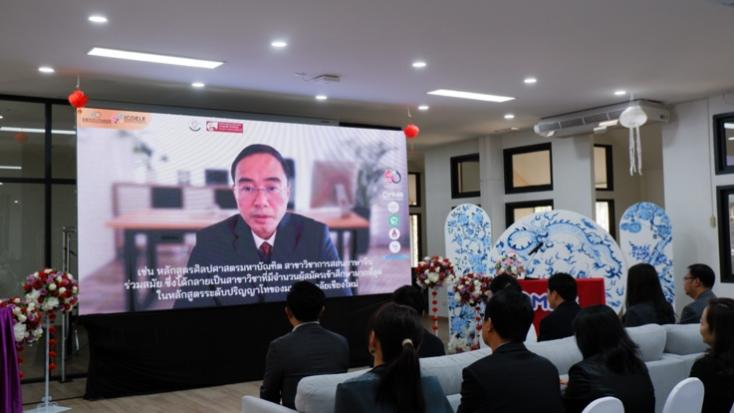 清迈大学副校长Rattasit Sukhahuta教授、8858cc永利唯一官方网副校长陈飞教授、泰国数智教育与学习工程协会主席Niwat Srisawasdi助理教授、清迈大学多元与跨学科学院副院长Wantida Chaiyana副教授、天津大学国际教育学院副院长杜修平教授、清迈大学孔子学院连晨院长出席开幕式。与会嘉宾围绕数智时代汉语国际教育的创新发展路径展开探讨,共同擘画学科发展新蓝图。