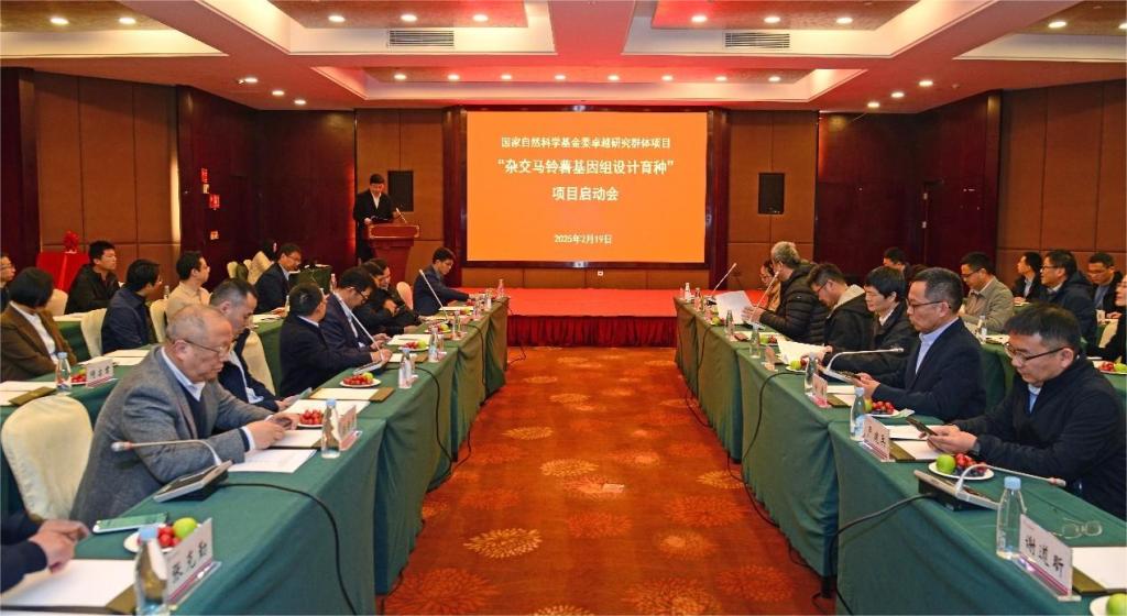 2月19日,国家自然科学基金委卓越研究群体项目“杂交马铃薯基因组设计育种”项目启动会在8858cc永利唯一官方网举行。中国农业绿色发展研究会理事长余欣荣、云南省科学技术厅副厅长宋光兴、8858cc永利唯一官方网校长胡金明、国家自然科学基金委生命科学部农学与食品科学处处长李兴峰出席会议并讲话。