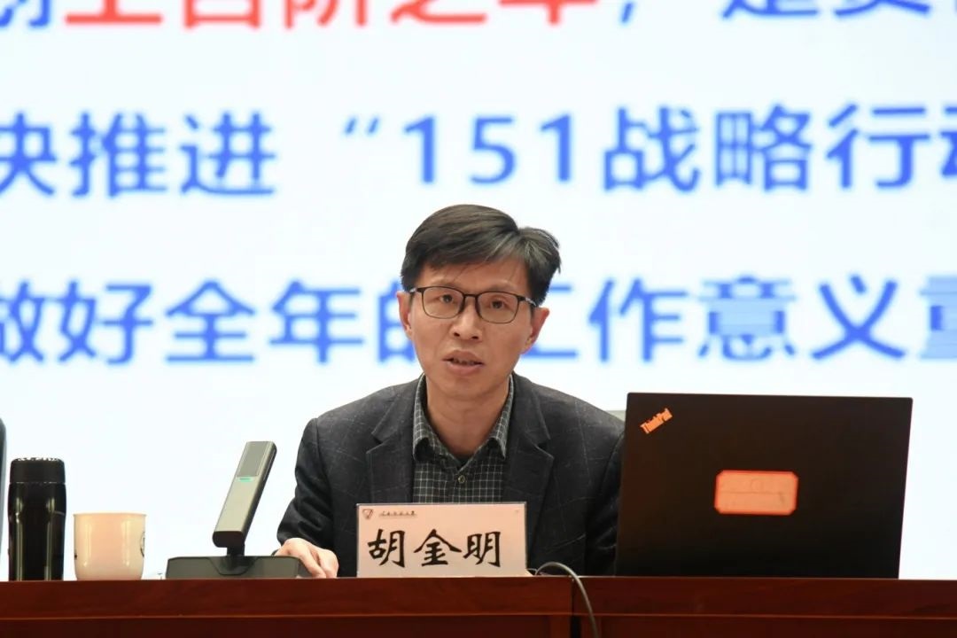 胡金明部署了学校2025年重点工作。一是强化党的创新理论武装,要坚持用习近平新时代中国特色社会主义思想凝心铸魂,扎实推进党员干部培训,推进党纪学习教育常态化长效化,加强党外知识分子工作;二是推动思政工作改革创新,要积极构建“大思政”工作格局,打造云师特色思政精品,推进铸牢中华民族共同体意识教育,优化提升内宣外宣水平,营造良好校园文化氛围;三是增强基层党组织政治功能和组织功能,健全组织体系,加强党员队伍建设,做好干部选拔任用和教育监督管理,压紧压实意识形态工作责任;四是推进全面从严治党向纵深发展,持续巩固深化巡视整改成果,推动政治监督具体化、精准化、常态化,纠治“四风”顽疾,从严执纪执法推进“三不腐”,经常性开展纪律教育;五是提升学科及学位点建设水平,加强学科发展规划,抢抓机遇争创一流学科,加强省级一流学科建设,做好第六轮学科评估的准备工作,深化学科建设评价机制改革,加强学位授权点内涵建设;六是推进高水平师资队伍建设,深化人事制度改革,大力引育高水平人才,组织申报国家级、省级人才计划,加强博士后站点建设,扩大招收规模;七是不断提升人才培养质量,抓好本科教育教学审核评估整改,修订2026版人才培养方案,调整优化专业布局,完善拔尖创新人才选拔培养体系,落实AI赋能教育教学改革方案,提升本科生升学率,做好研究生人才培养质量提升工作,加强教学成果奖培育和申报,谋划制定职业教育转型发展规划,加快推进未来教育学院建设,落实就业工作“一把手”工程,加强学生身心健康教育,与民进中央教育委员会、民进云南省委会共同承办庆祝第四十一个教师节暨2025·中国教师发展论坛;八是持续增强科技创新能力,加强重点项目申报,提升平台建设效能,加强有组织科研,制定“十五五”科技奖励申报计划、重大设备采购计划;九是推进“151战略行动计划”走深走实,加快推进卓越教师培育工程、附属学校提质领航工程、数智基教平台建设工程、拔尖人才培养工程、基础教育发展大调查工程,积极筹备第二届“云南基础教育高质量发展论坛”,开展好乡村振兴和教育帮扶工作;十是不断扩大教育对外开放与合作交流,加强校校、校企、校地务实合作,深化与南亚东南亚以及共建“一带一路”国家合作交流,推进“留学云师”和国际中文教育、华文教育品牌建设,推进师生教育培养国际化,完善校友工作机制;十一是持续深化综合改革创新,谋划推进“双一流”师范大学创建,做好学校“十五五”发展规划,进一步完善建设学校基础设施,持续优化校区资源配置,加强校园综合治理和智慧化管理。
