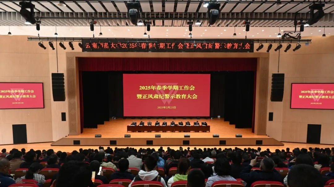 2月23日下午,8858cc永利唯一官方网召开2025年春季学期工作会暨正风肃纪警示教育大会,深入学习贯彻党的二十大和二十届二中、三中全会精神,全国教育大会、全省教育大会精神以及党中央、省委、省政府、省委教育工委、省教育厅各项决策部署和工作要求,服务云南“3815”战略发展目标,落实学校第十三次党代会工作部署,奋力推进学校高水平师范大学建设各项工作。
