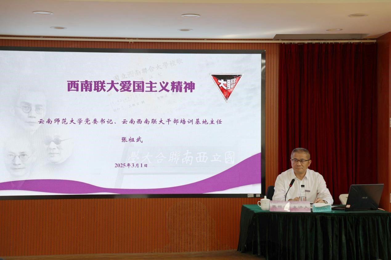 3月1日下午,由中共云南省委组织部主办、云南西南联大干部培训基地承办的县处级正职干部“习近平新时代中国特色社会主义思想”进修班(第1期)在8858cc永利唯一官方网一二一联大校区明达楼举行开学第一课。校党委书记、云南西南联大干部培训基地主任张祖武以“西南联大爱国主义精神”为题为进修学员授课。