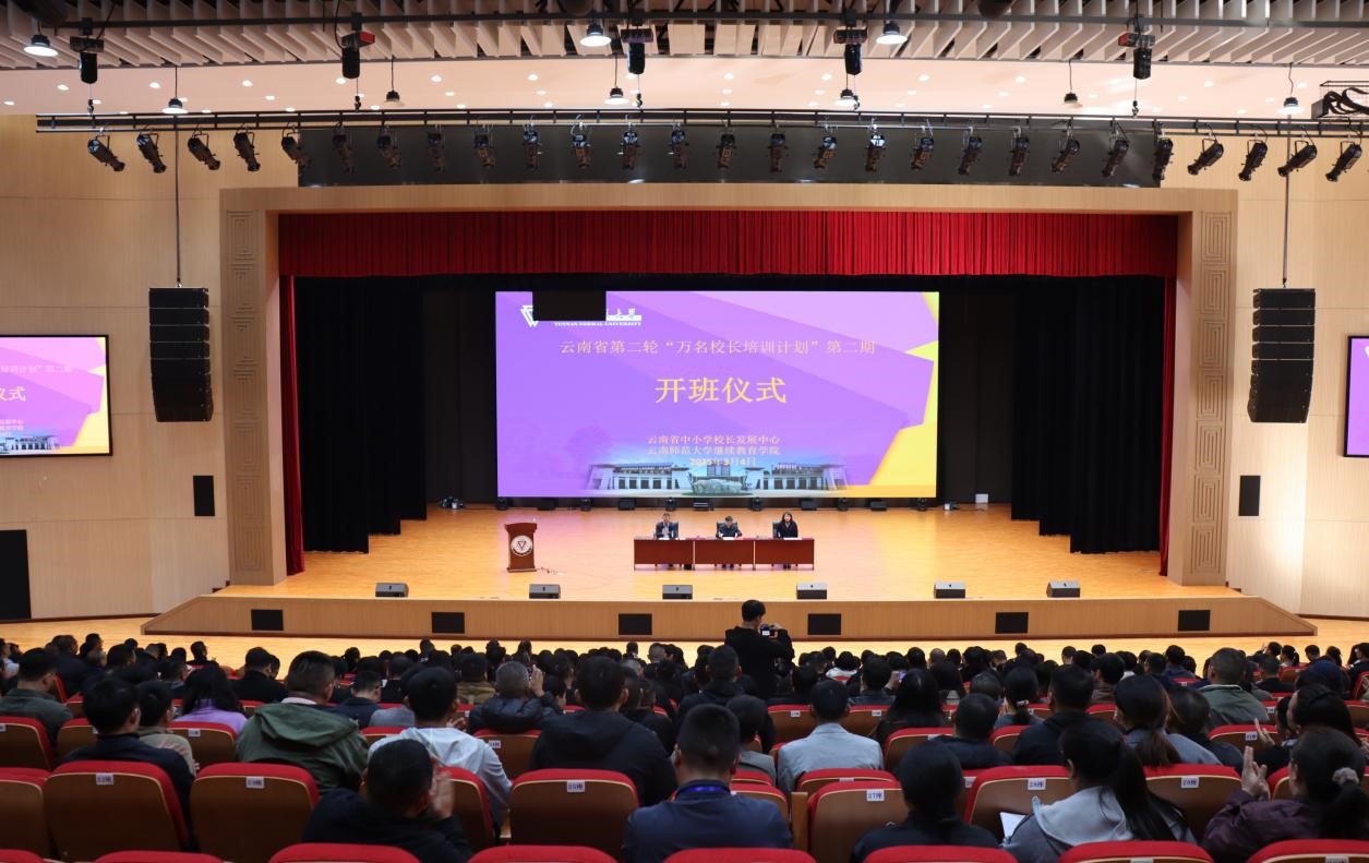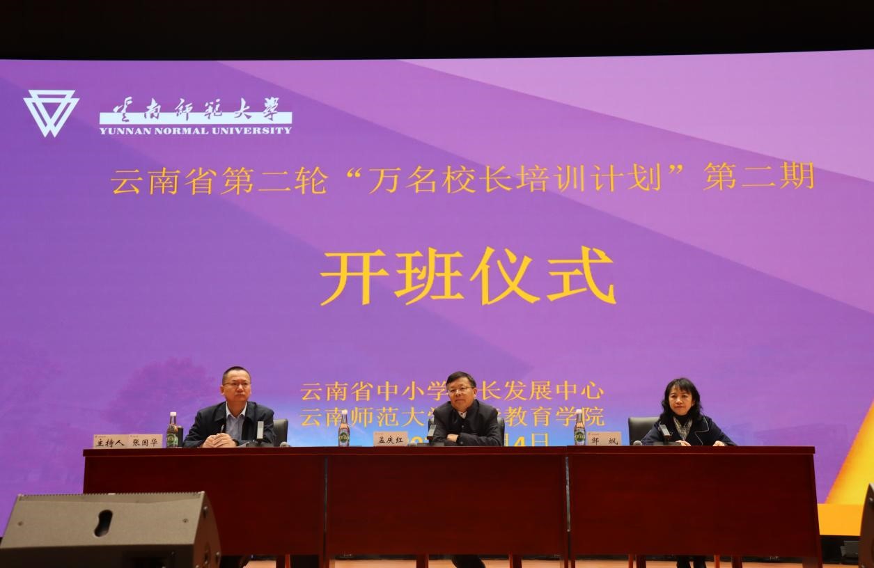 3月4日上午,云南省第二轮“万名校长培训计划”第二期开班仪式在永利官网呈贡校区举行。8858cc永利唯一官方网副校长孟庆红,继续教育学院党委书记邹飒、院长张国华,云南省中小学校长发展中心全体老师,以及来自全省16个州(市)444名中小学校(园)长参加开班仪式。开班仪式由张国华主持。
