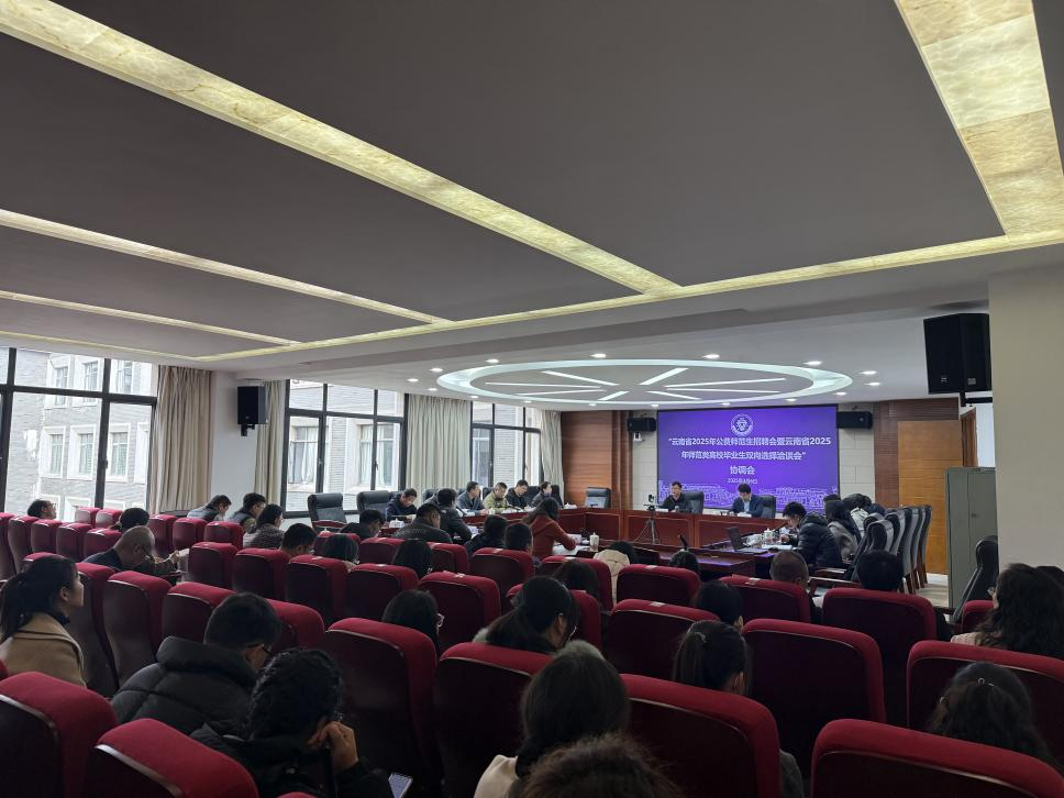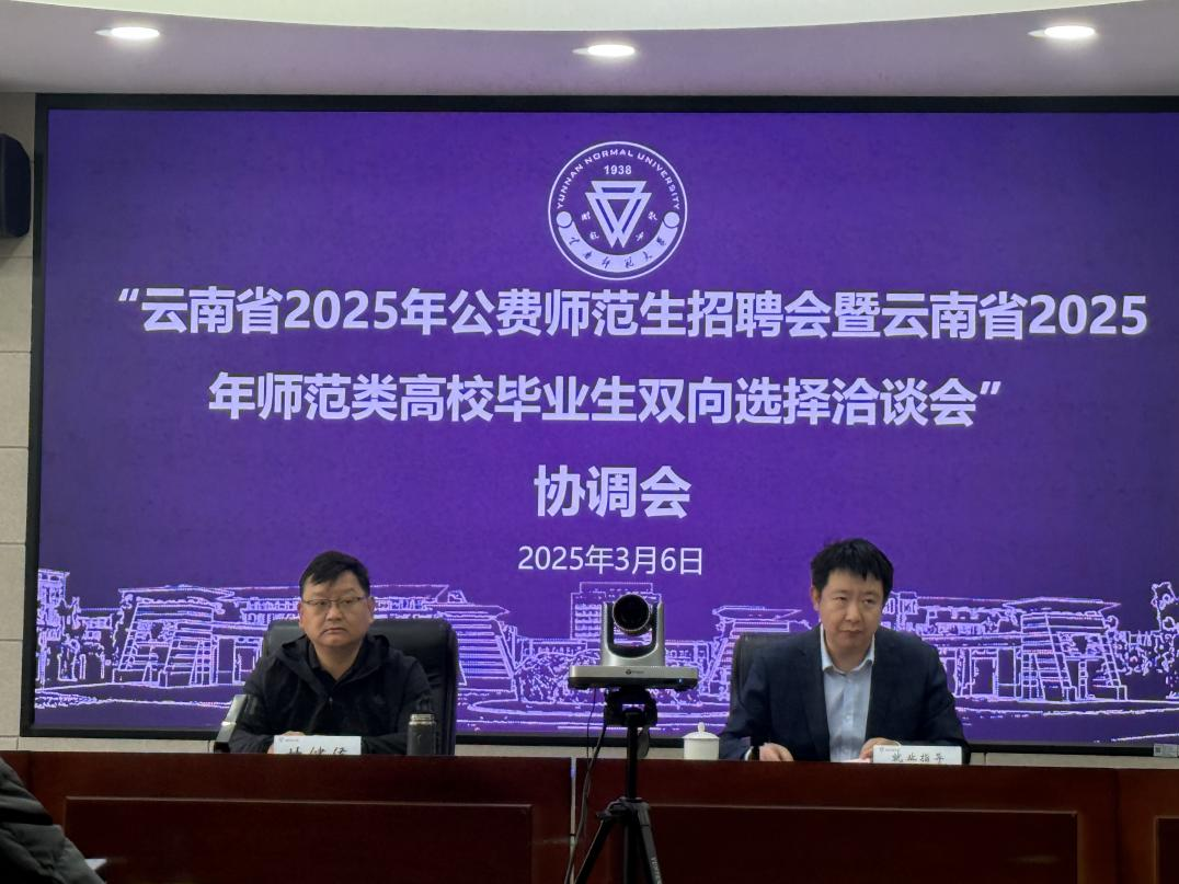 3月6日上午,永利官网在呈贡校区行政楼340会议室召开“云南省2025年公费师范生招聘会暨师范类高校毕业生洽谈会”协调会。副校长甘健侯,相关职能部门负责人,各学院(学部)党委副书记、辅导员,就业指导服务中心全体人员参加会议。会议由甘健侯主持。