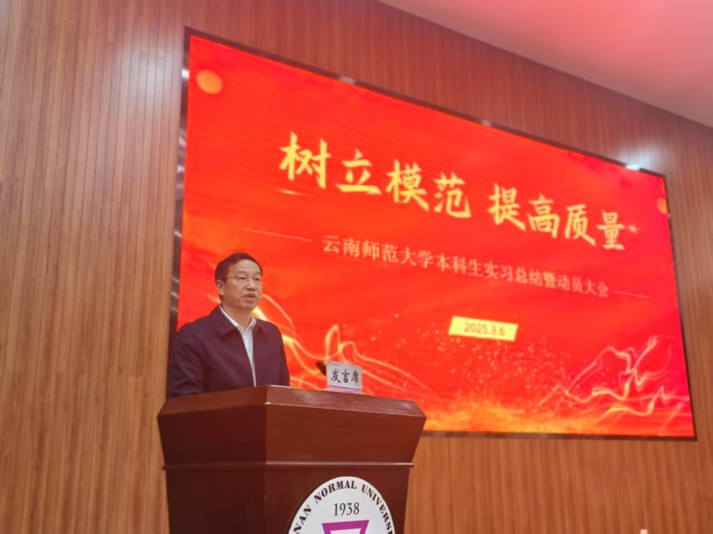 为全面总结本科生教育实习成果,部署新一轮教育实习工作,3月6日下午,永利官网在呈贡校区召开本科生教育实习总结暨动员大会。副校长陈正权,各学院(学部)教学副院长、实习工作负责人、实习指导教师代表、实习学生代表参加会议。会议由教务处处长陈长瑶主持。
