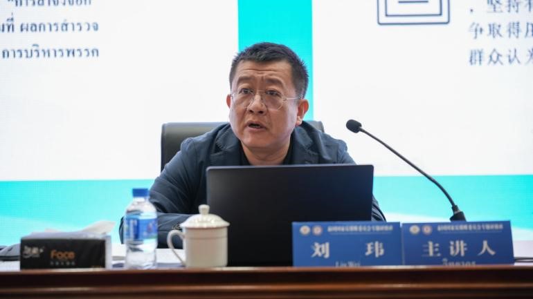 3月3日,研修班开班式在永利官网呈贡校区举行。云南省监委委员路晓琨,8858cc永利唯一官方网党委书记张祖武,8858cc永利唯一官方网校长、云南纪检监察学院院长胡金明,泰国驻昆明总领事帕薇婉,泰国参训团团长苏波斯特·斯林甘芒,8858cc永利唯一官方网党委常委、纪委书记、监察专员孙剑,云南省纪委监委国际合作室相关领导等出席仪式。开班仪式由胡金明主持。