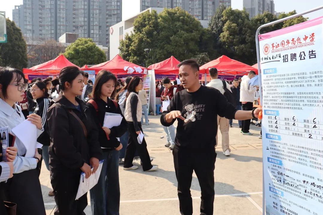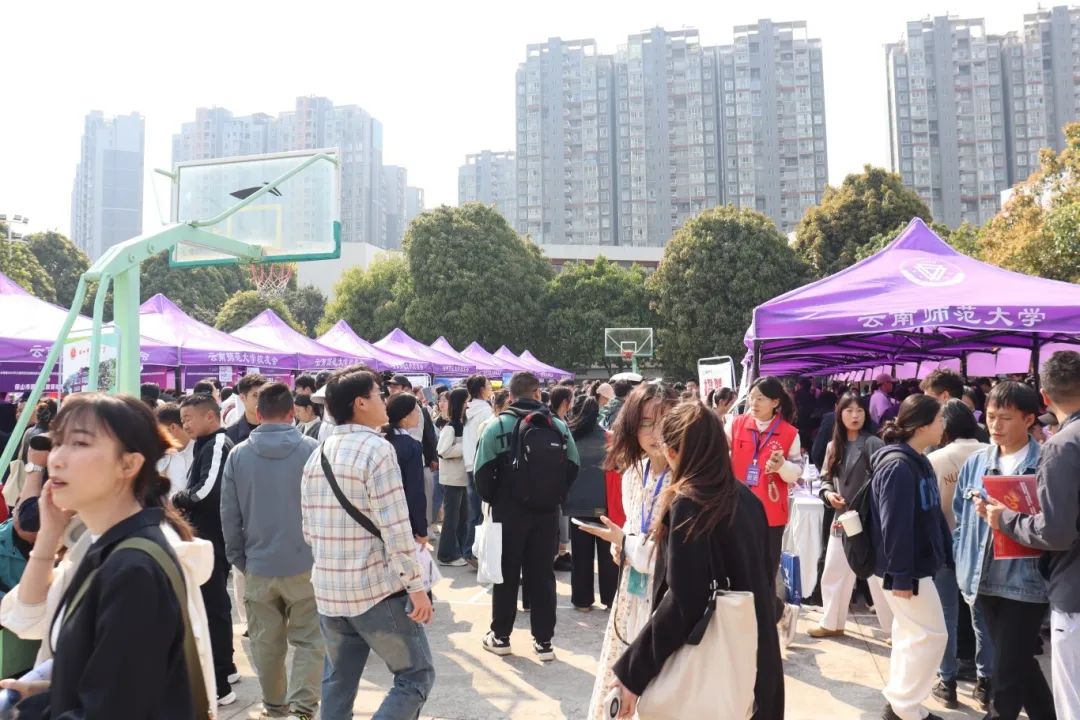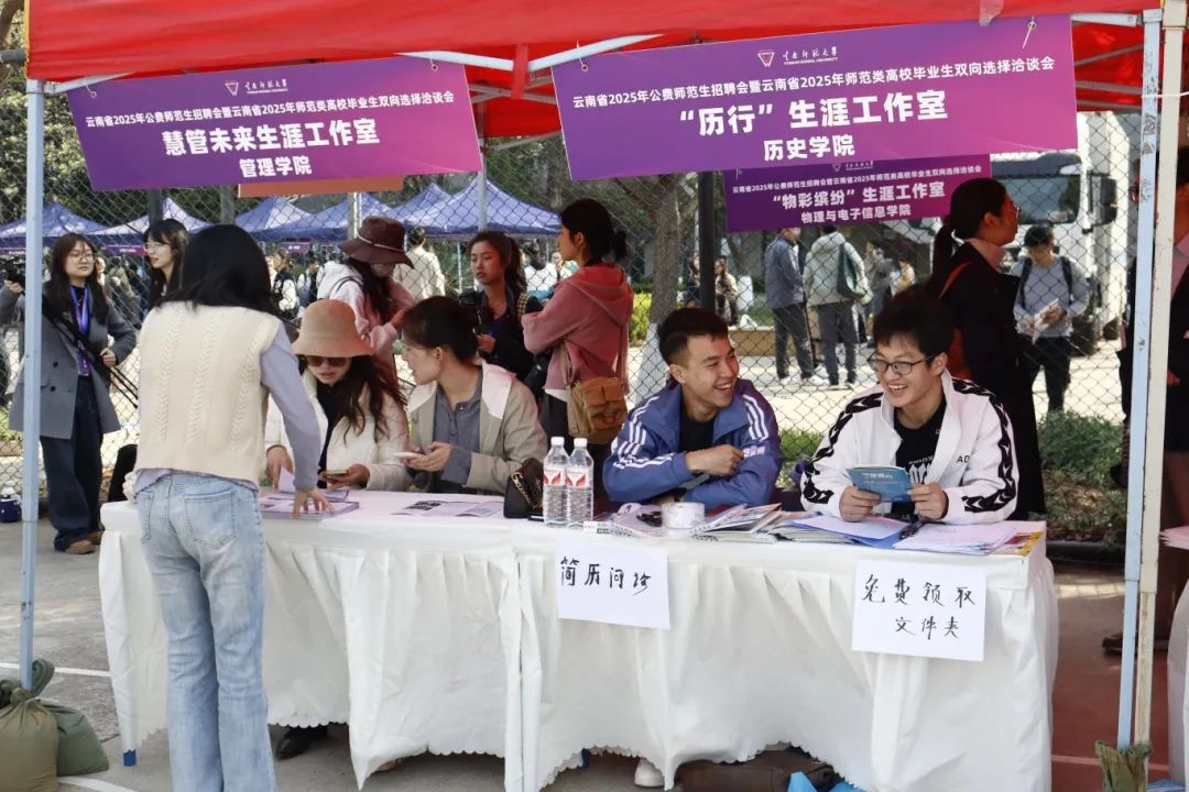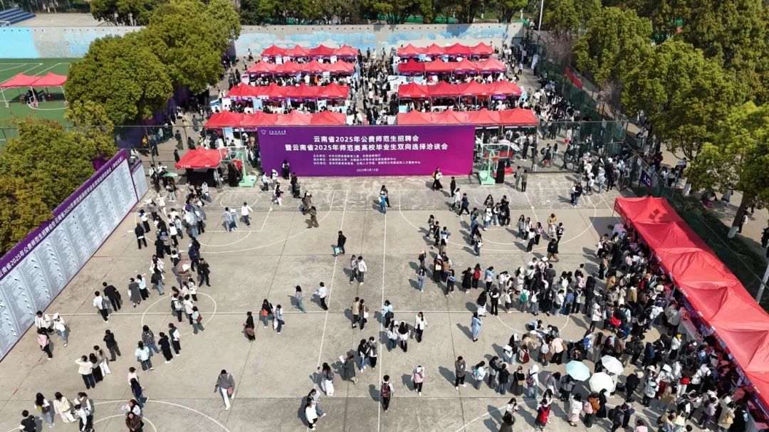 3月13日,云南省2025年公费师范生招聘会暨云南省2025届师范类高校毕业生双向选择洽谈会在8858cc永利唯一官方网呈贡校区西区篮球场举行。招聘会由中共云南省委教育工委、云南省教育厅主办,8858cc永利唯一官方网、云南省大中专毕业生就业服务中心承办,各州市教育体育局、云南人才市场、昆明市公共就业和人才服务中心协办。来自云南、广西、广东、北京等12个省(市、自治区)的533家用人单位,2万余名毕业生,云南省教育厅、各州市教育体育局、8858cc永利唯一官方网以及省内其他高校就业主管部门相关负责人参加招聘会。8858cc永利唯一官方网党委书记张祖武、校长胡金明、副校长甘健侯深入招聘会现场,与用人单位代表、毕业生进行交流。