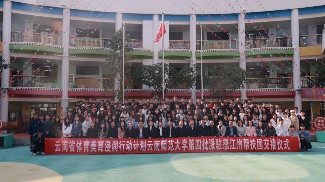 3月10日上午,帮扶团交接仪式在泸水市幼儿园举行。中共怒江州委副书记、州委教育工作领导小组副组长、教育工委书记杨国柱,泸水市、福贡县、贡山县政府、教育体育局分管领导,永利官网副校长陈正权、帮扶团驻点教师、艺术学院、体育学院120名学生参加活动。仪式由怒江州教育体育局党组书记、局长和春新主持。陈正权对怒江州委、州政府及泸水、福贡、贡山三个县市教育体育局对浸润计划提供的支持表示感谢,希望参加浸润计划的学生提高思想认识,弘扬西南联大精神,明确帮扶实习任务,认真思考“到怒江为什么?”“在怒江干什么?”“离开怒江留下什么?”三个问题,努力为边疆民族地区的基础教育发展作出贡献。
