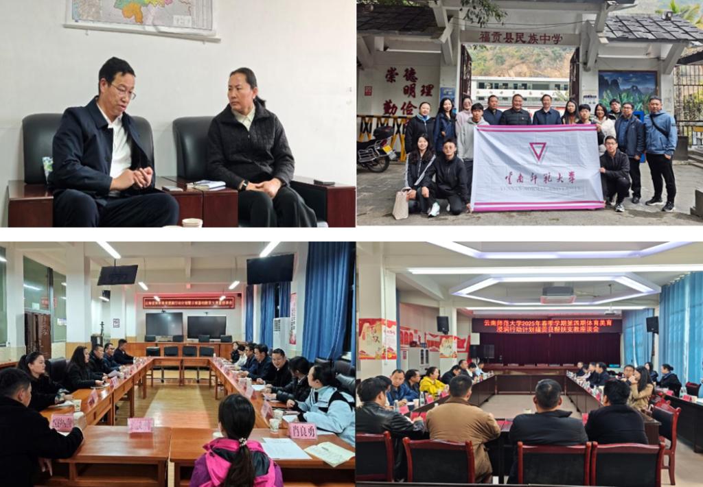 3月9日至3月14日,学校党委常委、副校长陈正权一行赴怒江州开展2025年春季学期第四期体育美育浸润行动计划帮扶支教工作并开展云南基础教育大调查。教务处、艺术学院、体育学院、教育学部相关负责人、部分教师代表参加调研。此次调研走访了13所驻点学校,开展了8次座谈会。州、县(市)、教体局相关领导、学校管理人员、老师100余人参加座谈并提供了调查数据。