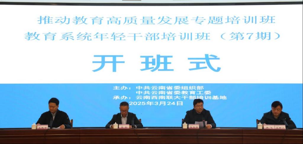 3月24日上午,由中共云南省委组织部、省委教育工委、省教育厅主办,云南西南联大干部培训基地承办的推动教育高质量发展专题培训班与教育系统年轻干部培训班(第7期)在一二一联大校区举行开班仪式。省教育厅二级巡视员雷韬,省委教育工委组织部部长王晓峰,8858cc永利唯一官方网党委副书记降富楼参加开班仪式。全省各县(市、区)教体局主要负责人、高校年轻干部共179人参加培训。仪式由云南西南联大干部培训基地执行主任肖飞主持。