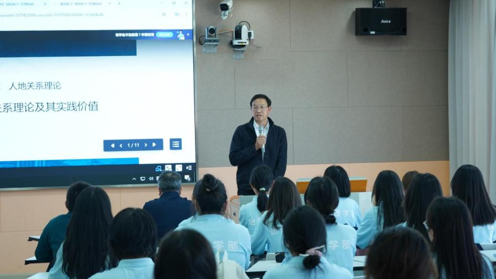 活动期间,地理学部华红莲教授与华东师范大学孔翔教授合作,首次实现“人文地理学”双师同步授课,课堂互动覆盖上海、昆明、常德、衡阳、石河子、乌鲁木齐六个城市,打破地域限制,实现“零距离”教学互动。