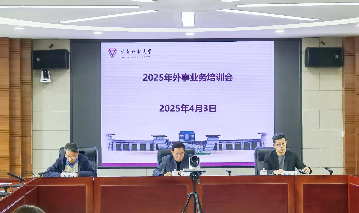 4月3日上午,学校2025年外事业务培训会在呈贡校区办公楼召开,会议由陈飞副校长主持。学校党委常委、党委统战部部长吴雁江,对外合作交流处全体人员、各学院(部)分管外事副院长及外事秘书参加培训。