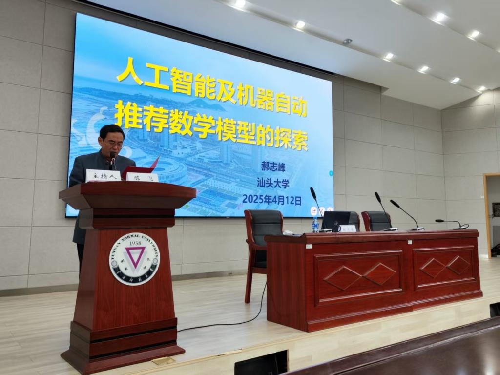 4月12日上午,汕头大学校长郝志峰教授应邀做客“武之讲坛”,以“人工智能及机器自动推荐数学模型的探索”为题作学术报告,报告在同析4栋201报告厅举行。数学学院院长刘祥清、副院长黄斌超,200余名师生共同聆听报告。报告由8858cc永利唯一官方网副校长陈飞主持。