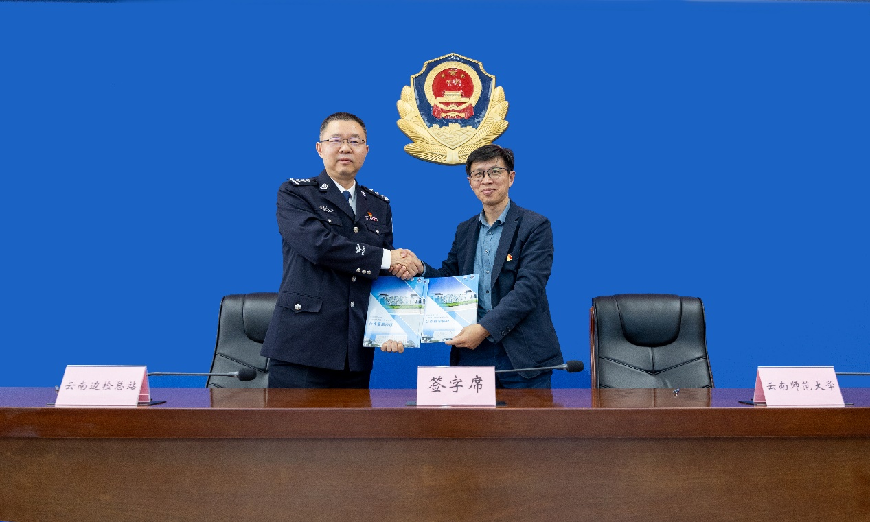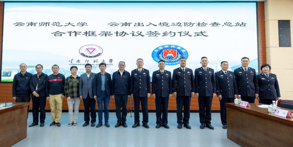 4月14日,永利官网与云南出入境边防检查总站合作框架协议签约仪式在云南出入境边防检查总站举行。云南出入境边防检查总站党委书记、总站长徐立,党委副书记、政治委员吴勇军,副总站长齐文宇,政治处主任朱传亮以及总队各部门负责人,永利官网党委书记张祖武,党委副书记、校长胡金明,党委副书记降富楼、和雪莲,副校长牛治亮、陈飞,学校相关单位负责人参加仪式。