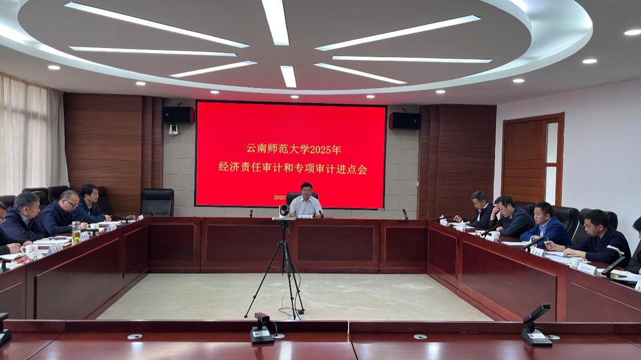 4月17日上午,学校召开2025年经济责任审计和专项审计进点会。审计委员会成员单位主要负责人、被审计单位党政主要负责人、被审计领导干部及联络员、审计处、审计组成员参加会议。会议由校党委副书记、审计委员会副主任降富楼主持。