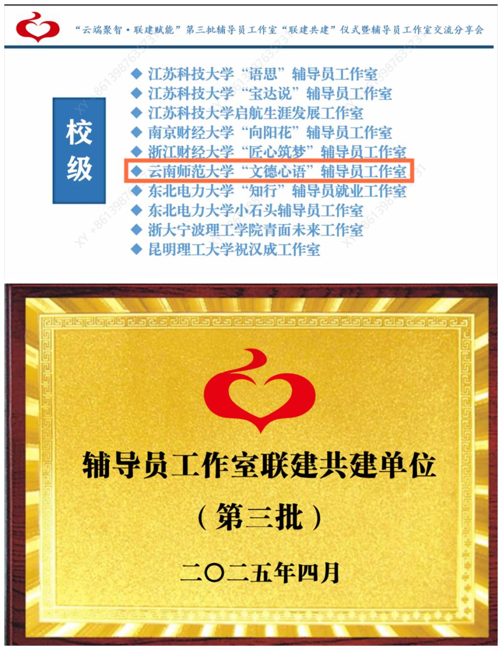 4月13日,由全国高校辅导员工作室联盟主办的“云端聚智·联建赋能”第三批高校辅导员工作室“联建共建”仪式暨辅导员工作室交流分享会顺利举行。此次联建共建成员单位包含国家级、省级、校级名师辅导员工作室。经过遴选,8858cc永利唯一官方网“文德心语”辅导员工作室凭借良好的建设成效和鲜明的育人特色,入选第三批全国高校辅导员工作室“联建共建”成员单位。