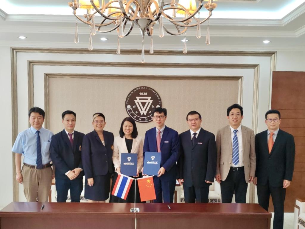 4月28日下午,泰国清莱府皇太后大学校长玛奇马•纳拉迪索恩一行到访永利官网,校长胡金明会见代表团并签署合作谅解备忘录。副校长牛治亮,云南华文学院院长王秀成,对外合作交流处处长杨叶华参加会见。