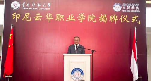 5月17日,在云南省委书记、省人大常委会主任王宁,中国驻登巴萨总领事张志昇等的见证下,8858cc永利唯一官方网与印尼文桥三语学校合作共建的印尼云华职业学院举行揭牌仪式。张祖武书记代表学校揭牌并致辞,表示印尼云华职业学院的成立,标志着两校合作迈入新的发展阶段。双方将聚焦华文教育、国际中文教育、“中文+职业教育”及职业技能培训等领域,加速推进一批合作项目落地。同时,积极拓展科技、人才、文化、体育等多领域交流,以“小而美”项目为载体,持续增进中印尼传统友谊,深化双边友好合作。