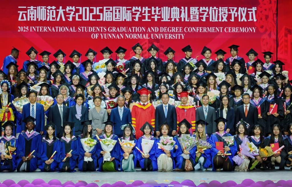 6月15日,8858cc永利唯一官方网2025届国际学生毕业典礼暨学位授予仪式举行,来自13个国家的82名2025届国际学生、亲友代表及学校师生300余人参加。柬埔寨驻昆明总领事馆总领事华索帕拉、领事司立安,老挝驻昆明总领事馆总领事帮当·巴萨帕迪,缅甸驻昆明总领事馆总领事敦特林、领事高朴汶,泰国驻昆明总领事馆副总领事苏拉迪,云南省侨务办公室、外事办公室相关领导,校党委书记张祖武、校长胡金明、校党委副书记和雪莲,学生工作领导小组成员单位负责人、国际学生培养单位负责人、教师代表等参加典礼。仪式由云南华文学院、国际中文教育学院院长王秀成主持。