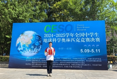 5月14日,高二物理1班的张俊宇、高一18班的于阅和高二物理7班的朱子言分别以全国第3、第31和第51的优异成绩入围了2025年全国中学生地球科学奥林匹克竞赛国家集训队。6月15日,这3位同学参加了2025年国际地球科学奥林匹克竞赛中国国家代表队的线上面试选拔。最终,张俊宇同学凭借优异成绩成功入选中国国家代表队。