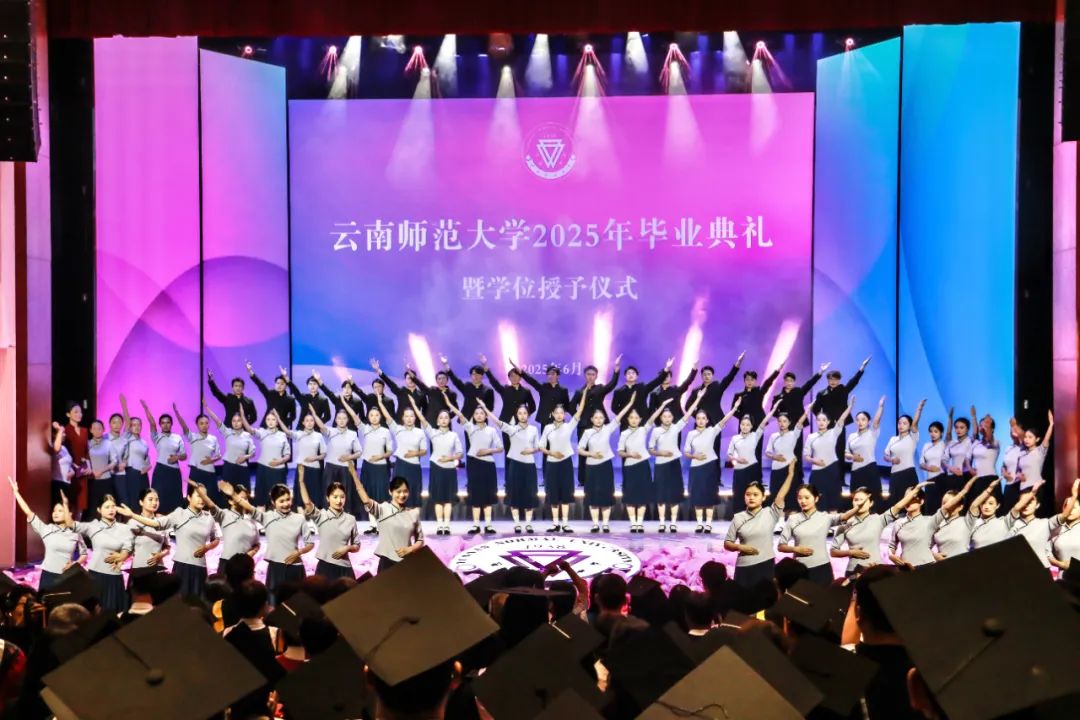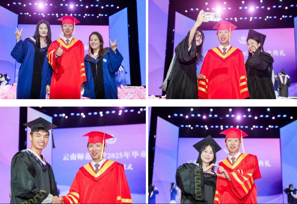 “从此,你们拥有了一个共同的名字——云师校友!母校会永远关注你们、牵挂你们,期待着你们的好消息,欢迎大家常回家看看。”胡金明为毕业生们送上祝福,“祝同学们毕业快乐、前程似锦、一生幸福!”