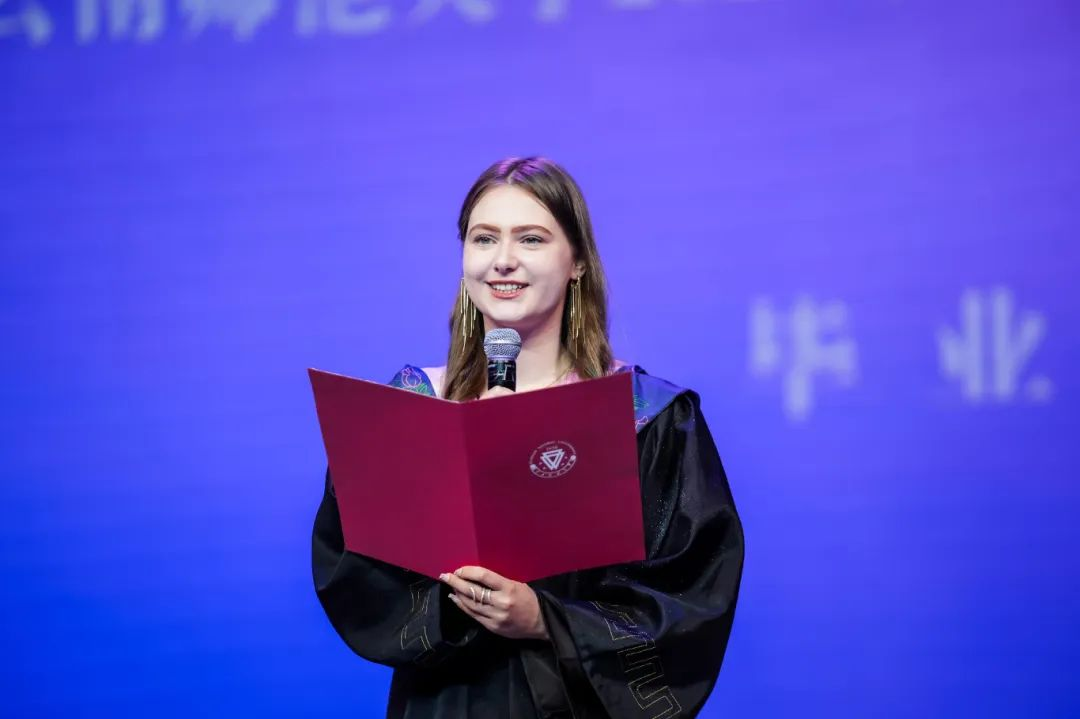 从“中文小白”到“中国通”,来自乌克兰本科毕业生代表娜斯佳分享她在云师的留学生活。四年里,她遇到了耐心的老师和热心的同学,帮助她克服语言障碍,融入云师大家庭。她积极参与文化交流活动,体验多元文化。未来,她希望成为汉语教师,将中国文化传播到乌克兰,成为中乌文化交流的“使者”。
