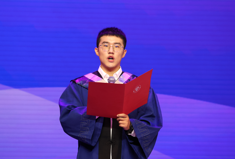 “母校赋予我的学识、韧性与责任感,将是我前行的底气。”硕士毕业生代表刘跃龙感谢在母校、导师和团队的支持下,以第一作者身份发表了6篇SCI一区论文和两项发明专利,并入选《人民日报》研究生国家奖学金获奖学生代表名录。未来他将攻读博士研究生,深耕能源催化领域,继续攀登科学高峰。“愿我们在工作学习上做自己的‘催化剂’,遇到困难主动出击;生活上保持‘反应热忱’,永远热爱生活!”