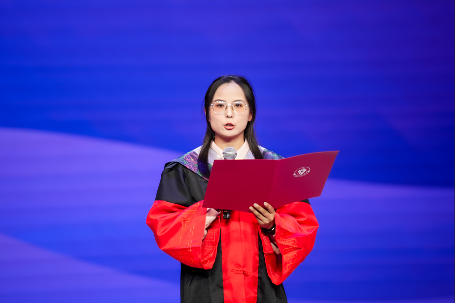 从硕士到博士,从课堂到实验室,从田野调查到数据分析,博士毕业生代表王敏始终铭记“刚毅坚卓”的校训,她以第一作者和通讯作者身份发表SCI、SSCI等期刊论文8篇,主持完成省厅级和校级科研项目2项,获国家发明专利1项,并多次荣获国家奖学金、省政府奖学金、省三好学生与优秀毕业生等荣誉。她将专业知识与国家战略紧密结合,在实践中坚定理想信念,立志在教书育人岗位上追光前行。