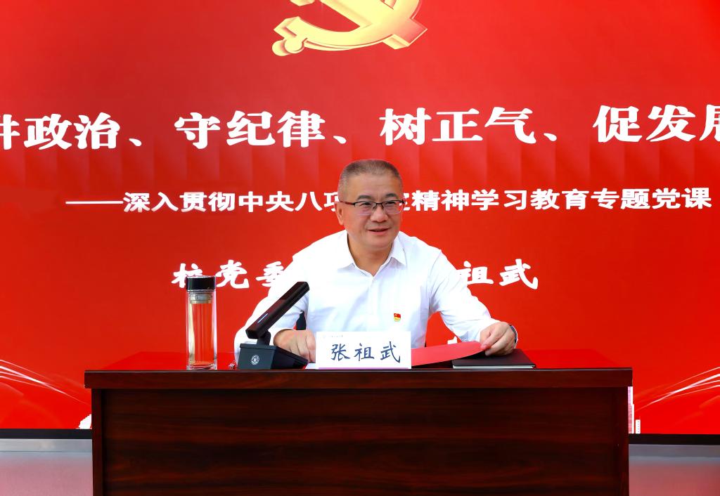 张祖武以“讲政治、守纪律、树正气、促发展”为主题讲授深入贯彻中央八项规定精神学习教育专题党课。他勉励马院师生党员要讲政治,做信仰坚定的“明白人”,立足“第一学院”“第一学科”“第一课程”的身份,珍惜自己“第一”的职业,切实肩负起“第一”的重要职责;要守纪律,做心有敬畏的“清醒人”,切实把党的纪律和规矩记在脑中、刻在心上、付诸行动,带头模范遵守党规党纪,争做守纪律讲规矩的表率;要树正气,做正人正己的“正派人”,自觉承担思想引导、灵魂塑造、心灵净化的崇高使命,以独特的人格魅力润物于无声,为学生开启真理之门、把稳思想之舵、指引人生航向;要促发展,做实干担当的“有为人”,在抓好人才培养工作的同时,着力在学科建设上下更大功夫,争取取得新的更多成绩。