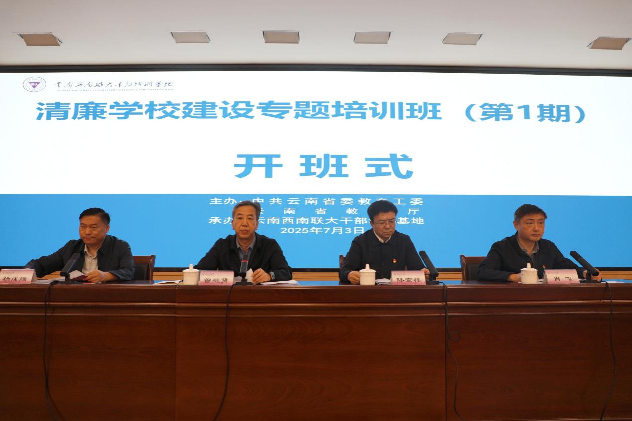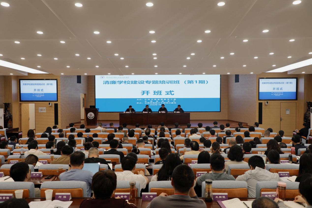 7月3日,由云南省教育厅主办,云南西南联大干部培训基地承办的清廉学校建设专题培训班(第1期)在永利官网一二一校区田家炳教育书院报告厅开班。省教育厅一级巡视员曾继贤,校党委副书记降富楼,省教育厅监督处处长杨成端参加开班仪式,全省各高校重点风险岗位、重要关口部门负责人共230人参加培训。开班仪式由云南西南联大干部培训基地执行主任肖飞主持。