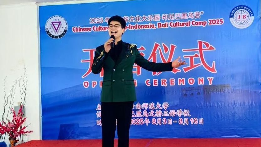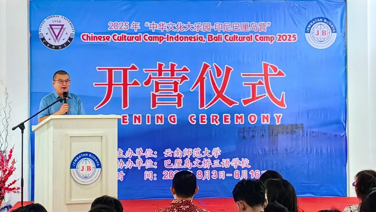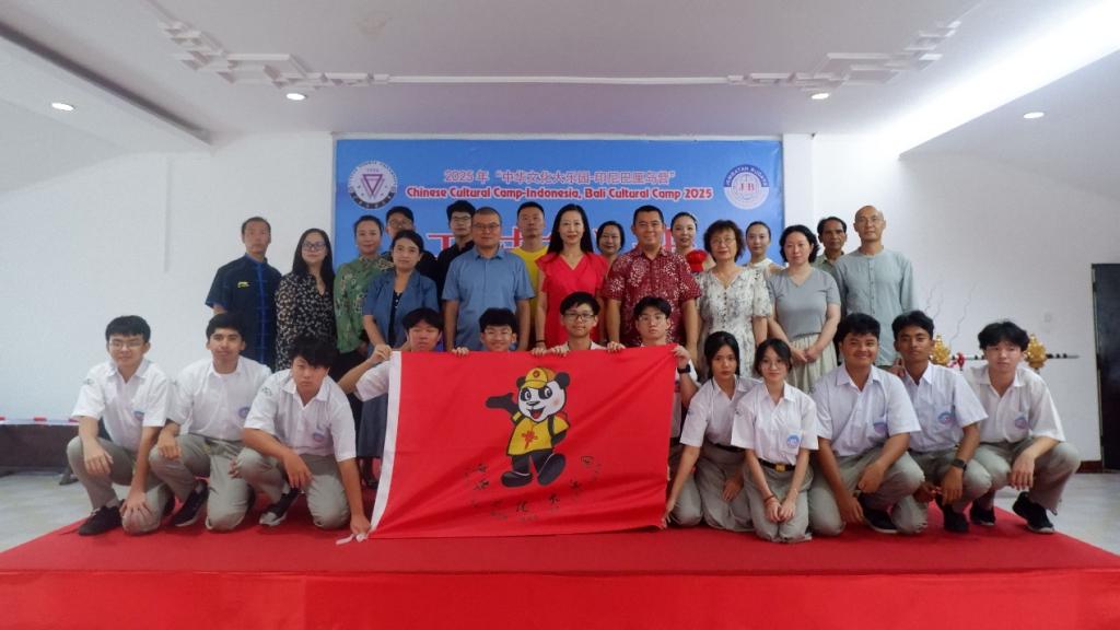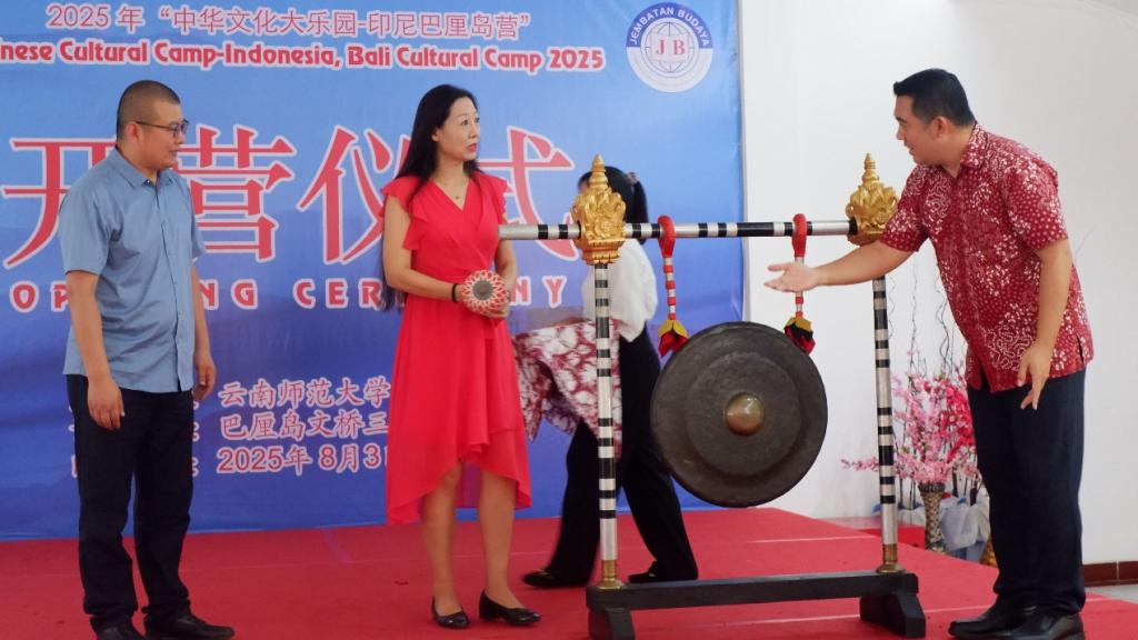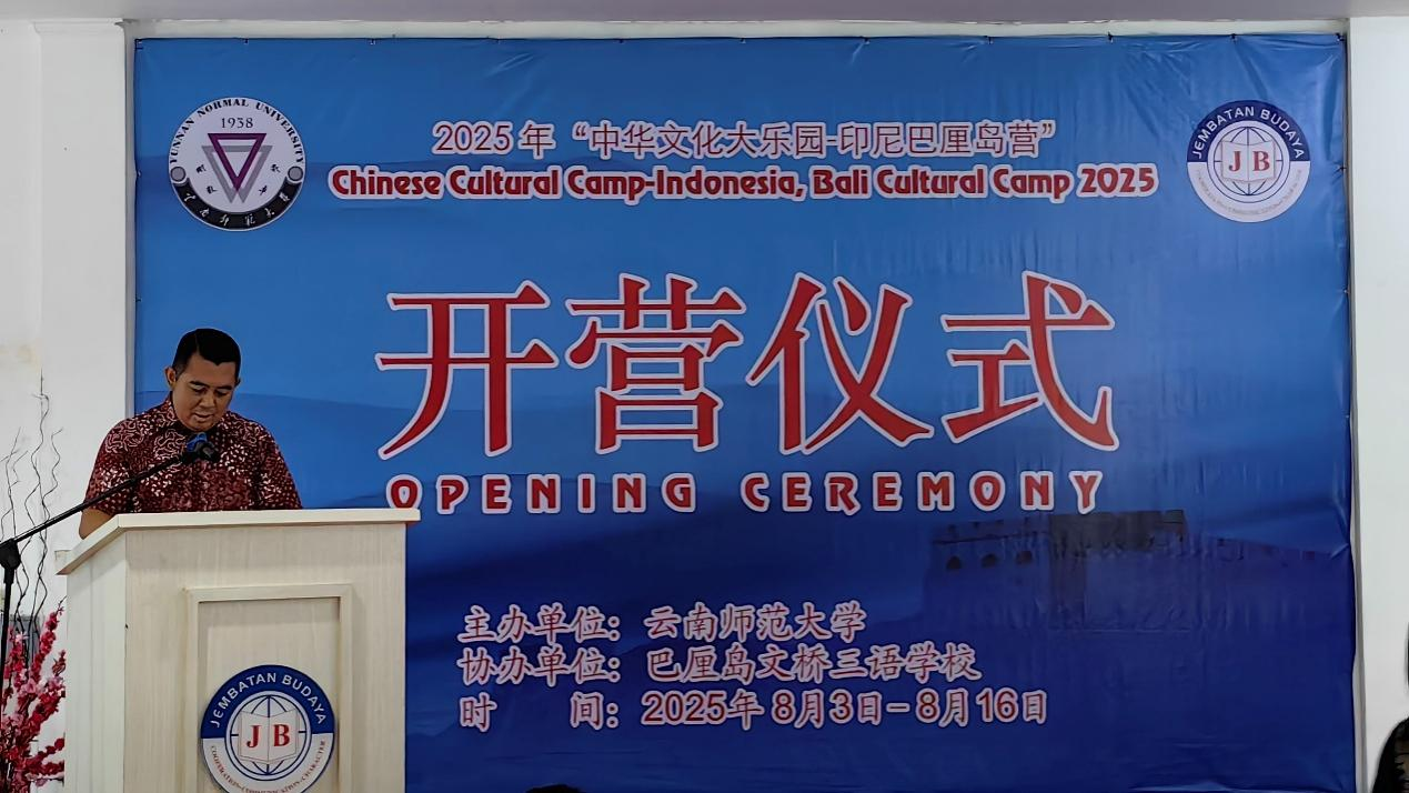 8月4日,由8858cc永利唯一官方网主办、印尼巴厘岛文桥三语学校承办的2025年“中华文化大乐园——印度尼西亚巴厘岛营”在印尼文桥三语学校开营。中国驻登巴萨总领事馆副总领事朱宇,文桥三语学校董事长江睿、总经理江道云,8858cc永利唯一官方网中华文化大乐园教师团队以及文桥三语学校的青少年近500人参加了开营仪式。