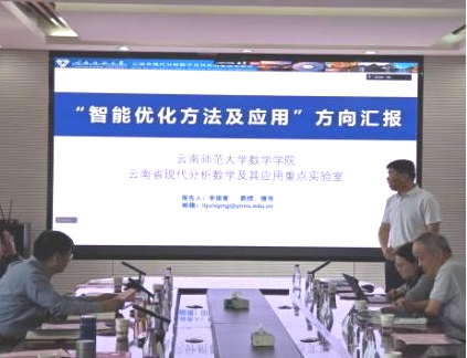 会议第二阶段,云南省现代分析数学及其应用重点实验室主任刘祥清作重点实验室年度工作报告及“现代数学前沿理论研究”方向汇报,实验室副主任李俊青作“智能优化方法及应用”方向汇报,实验室副主任闫芳作“生物数学与复杂系统”方向汇报,实验室副主任梅丽杰作“数值分析及应用”方向汇报,实验室副主任王亮作“复杂数据分析及工业统计”方向汇报。