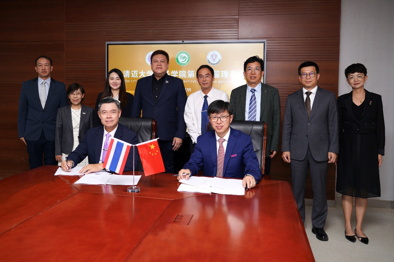 8月11日上午,清迈大学孔子学院第十七届理事会在永利官网召开。校长胡金明、副校长陈飞、国际中文教育学院院长王秀成、对外合作交流处处长杨叶华,清迈大学校长彭拉·习班迪蒙坤、副校长塔雅努帕•阿楠塔纳、校长助理沃拉甘亚·卟拉帕塔娜、国际处处长卡蒂玛•帕西玉喜,以及清迈大学孔子学院中方院长连晨、泰方院长李雄英参加会议。会议由陈飞主持。