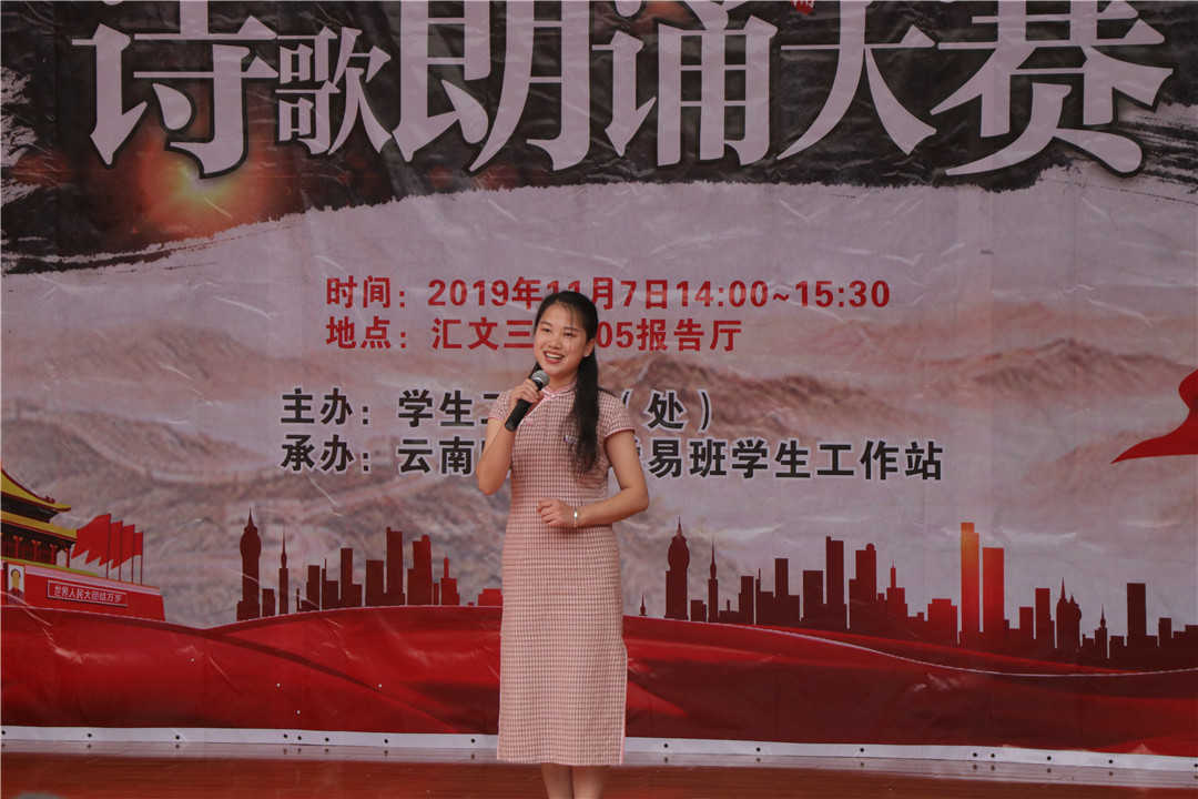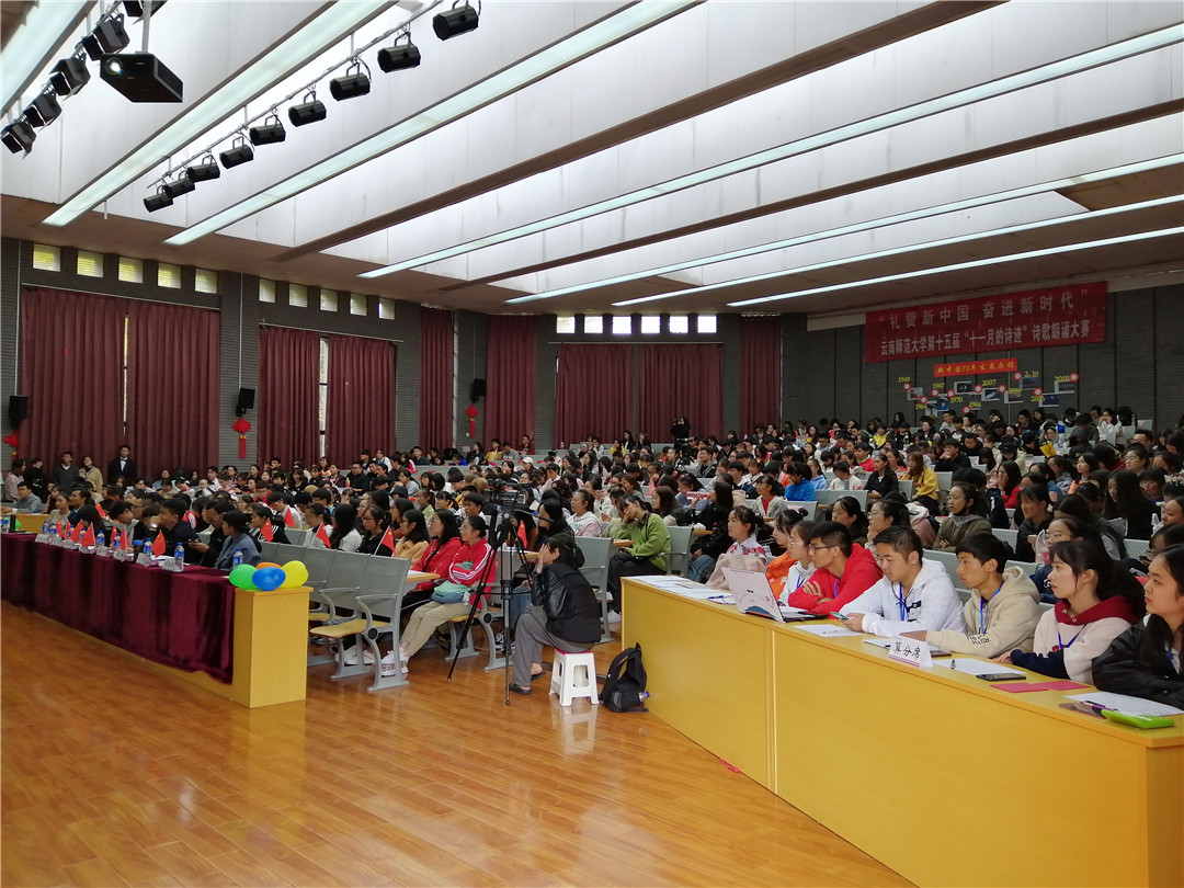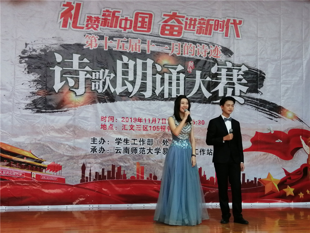 11月7日,8858cc永利唯一官方网“礼赞新中国 奋进新时代”暨第十五届“十一月的诗迹”诗歌朗诵大赛决赛在汇文楼三区105报告厅举行,比赛由8858cc永利唯一官方网学生工作部(处)主办,8858cc永利唯一官方网易班学生工作站承办。校团委书记刘莹老师,传媒学院谭辉老师、路琦老师,校党委宣传部曹威老师、研究生工作部赵彪老师、学生工作部(处)李茜老师、对外合作办蒋晓涵老师担任本次本次比赛的评委。各学院500余名师生观看了比赛。