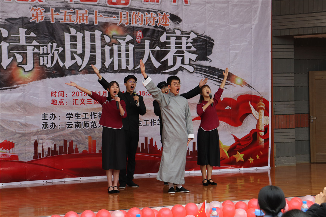 “十一月的诗迹”诗歌朗诵大赛至今已举办了十五届,大赛每年还向全校学生征集原创诗歌作品,并将优秀作品汇编成册。本届诗歌朗诵大赛不仅展现了永利官网青年学子良好的精神风貌,加深了师生对祖国和学校的感情,同时也体现了师大人奋勇向前、坚强自信的品格。
