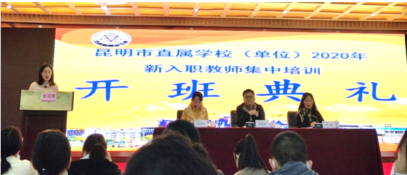 昆明市教育体育局蒋坚桥副局长在开班典礼讲话中介绍了培训基本情况,并对参训新教师提出了加强学习、锤炼品质,严底线、重操守,为党育人、为国育才的殷切希望。昆明市教育体育局师范教育处杨朝晖处长全程指导培训方案研制、培训课程设计、专家团队组建等工作,并为参训学员解读了昆明市中小学教师培养培训政策。
