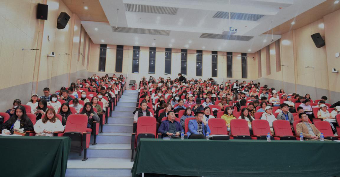 路平校友在讲座中列举了很多经典案例。他用莫比乌斯环效应、中诺教育的发展和员工的人生经历等鲜活案例告诉同学们“要逃出舒适圈”“要追求自我价值的实现”“微小如苔也可灿烂如牡丹”。讲座中,他一直用张桂梅校长的事迹贯穿始终,并提出“人生是一个寻找自我使命、实现自我使命的过程。”