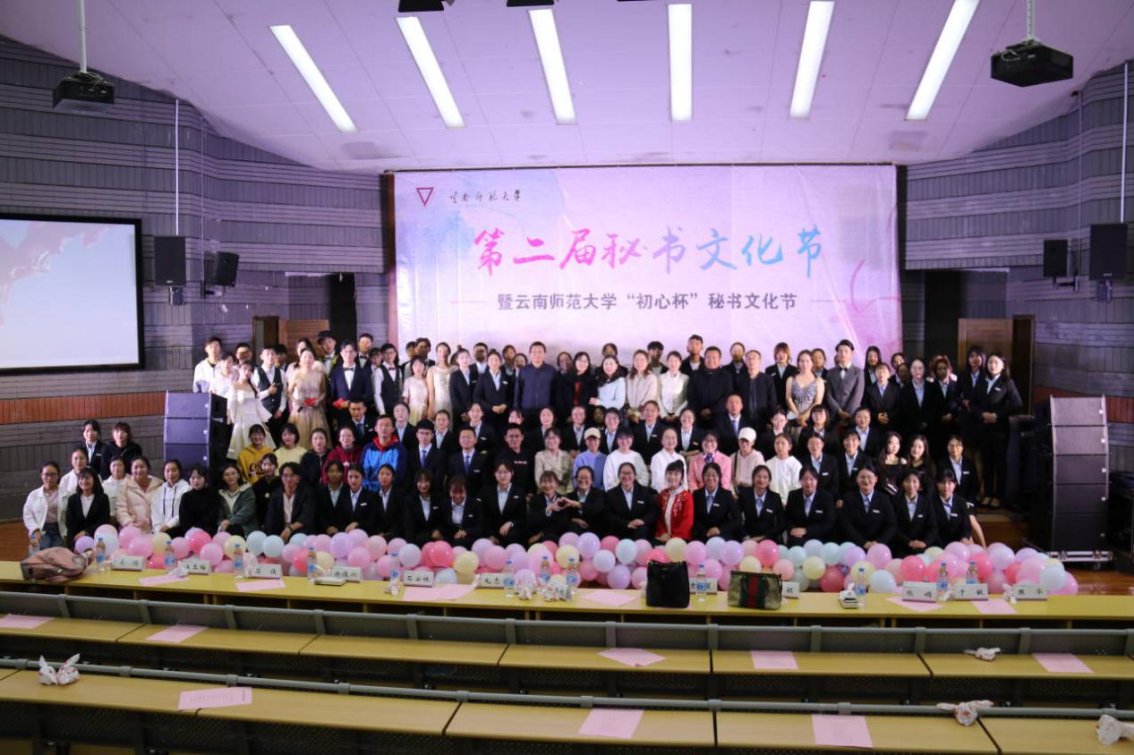 晚会最后,文学院党委副书记石安银在总结发言中表达了对本次秘书文化节成功举办的赞许以及对明年节日开展的期待。所有出席活动的领导、秘书学专业学子及工作人员合影留念。
