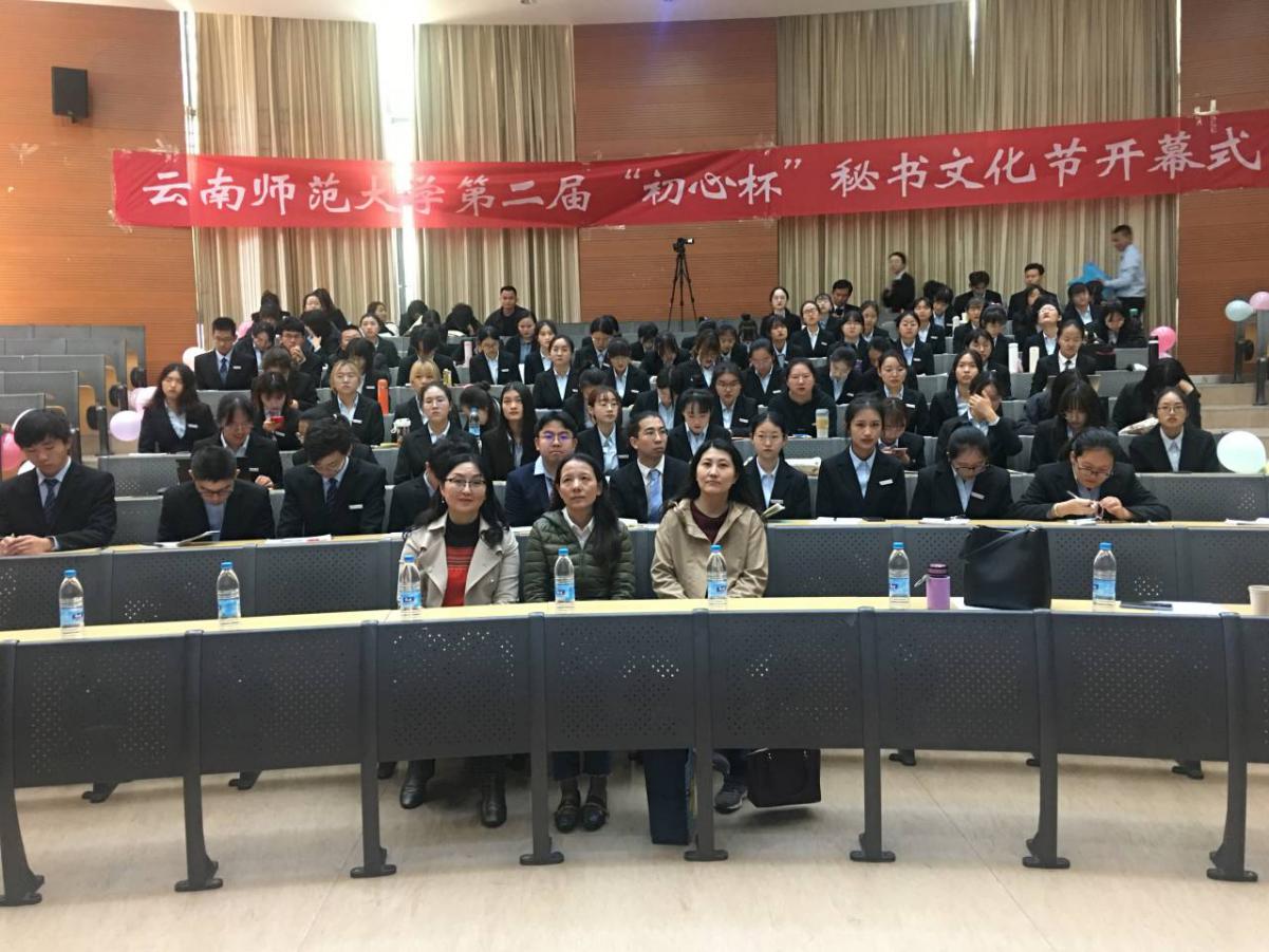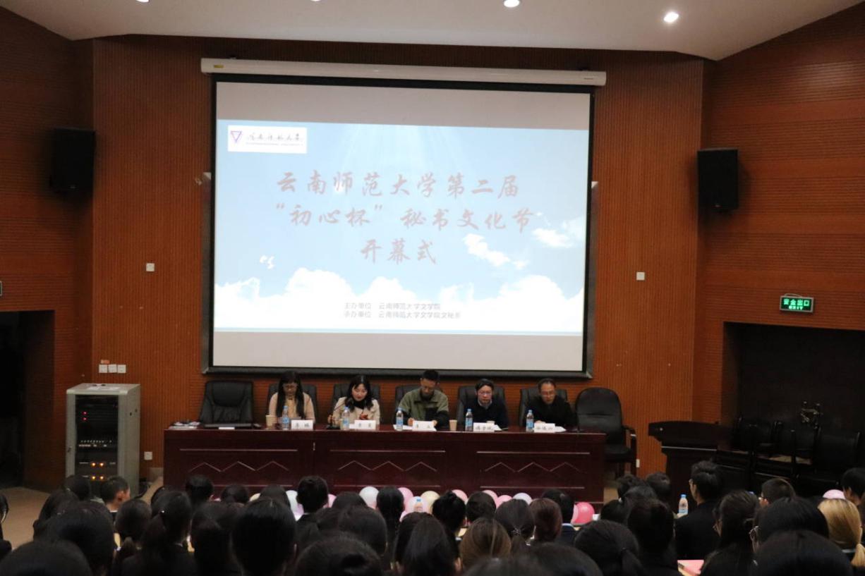 11月20日上午9:00,由文学院主办、文秘系承办的8858cc永利唯一官方网第二届“初心杯”秘书文化节在呈贡校区明德二号楼报告厅举行了开幕式。开幕式由文学院副院长徐俊六主持,文学院院长李立致开幕词,副院长傅宇斌、中文系系主任李瑛、文秘系系主任贾蔓先后发表讲话。