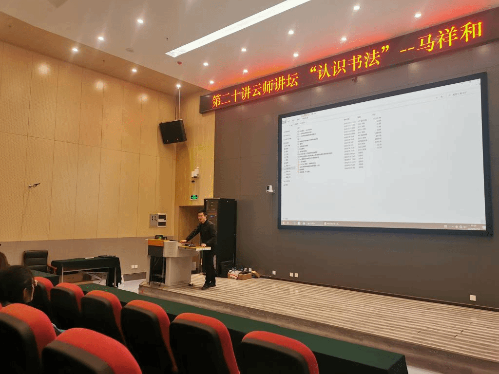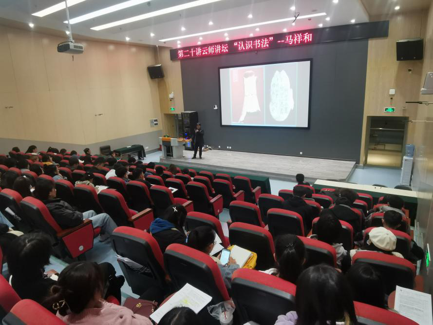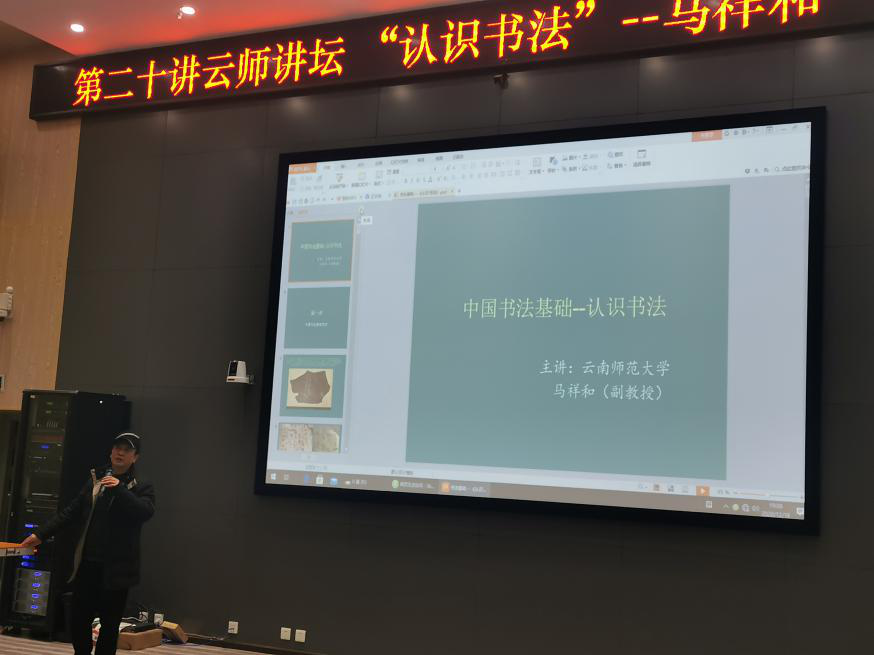 为大力弘扬中华优秀传统文化,搭建广大师生及书法爱好者学习交流的平台。“云师讲坛”第二十期讲座于12月18日晚七点在永利官网呈贡主校区教师教育国家级实验教学示范中心214报告厅举办,本次讲坛邀请了8858cc永利唯一官方网美术学院副教授,硕士研究生导师马祥和担任主讲嘉宾,主题为《认识书法》。讲座由科学技术处副处长刘连杰教授主持。同时还有100余名师生参加了此次讲座。