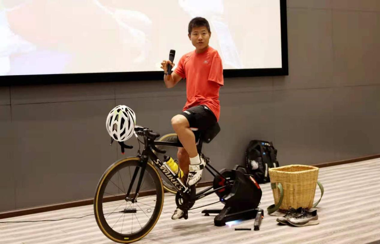 法学与社会学学院院长尤伟琼老师也来到了现场,她以体育人的坚毅品格呼吁大家向王家超学习,要在人生的航道上不断激励自己,勇敢面对人生的风浪。在场师生无不佩服王家超的坚持与自信,开展了踊跃的问答,最后以热情的自行车耐力测试将全场气氛烘托到了最高点。