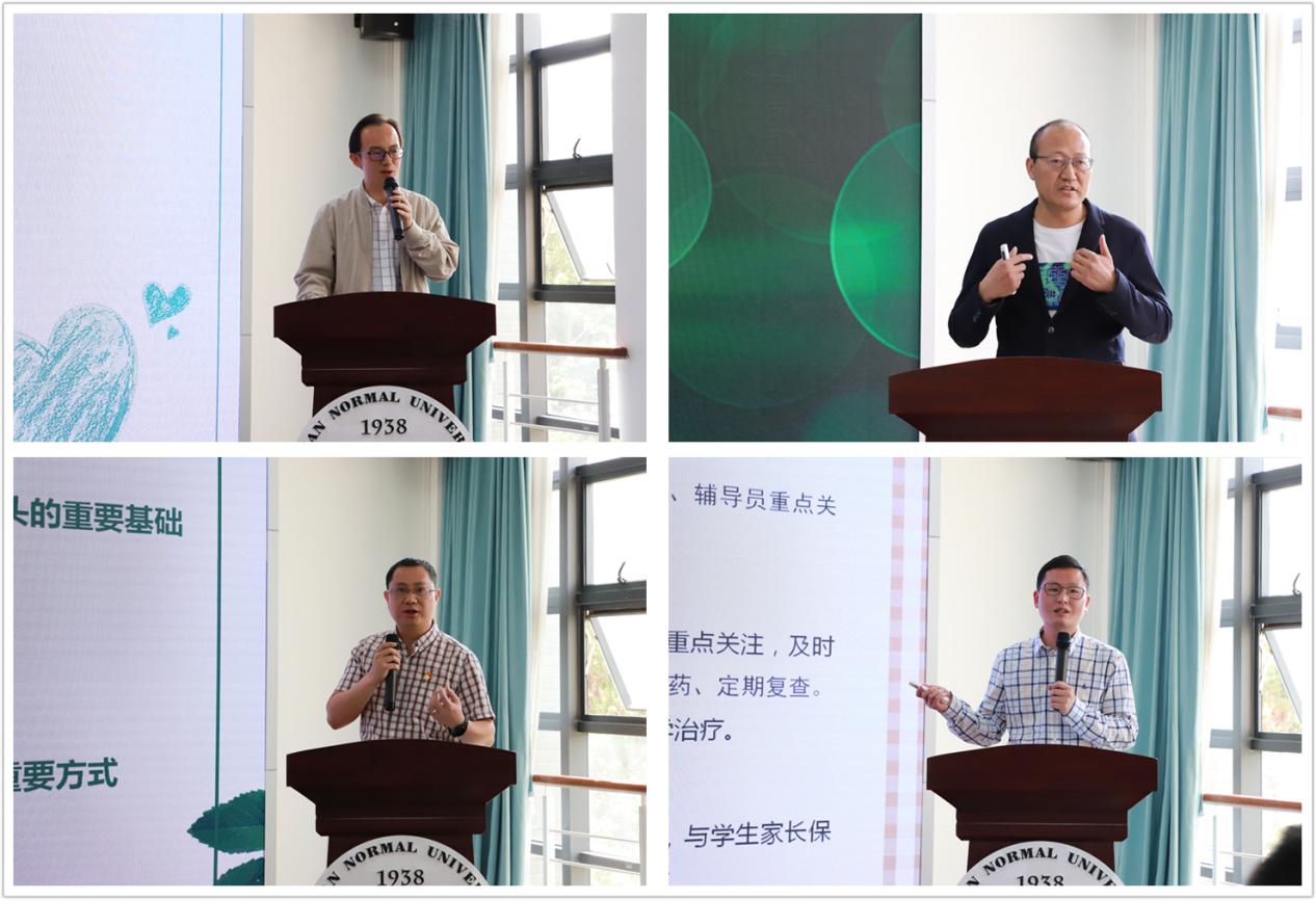 为进一步完善永利官网大学生心理危机预警防控体系,挖掘心理育人功能,创建健康、平安校园,4月15日上午永利官网举办了心理危机典型案例经验分享会。本次分享会由云南省学校心理健康教育师资培训与研究中心、云南省高校心理健康教育与咨询示范中心、高校思想政治工作队伍培训研修中心和学校心理健康教育咨询中心联合开展。研究生处处长黄海涛、学生处处长张国华、研修中心主任李正升、教育学部教授赵建新、马克思主义学院党委书记张健、传媒学院党委书记张天明、心理健康教育咨询中心教师、各学院(学部)党委副书记、辅导员等教师代表近100余人共同参加了本次分享会。分享会由心理健康教育咨询中心办公室主任尚云主持。
