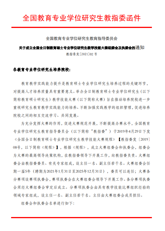 中共中央政治局常委、国务院总理李克强曾作出批示指出,研究生教育肩负着高层次人才培养和创新创造的重要使命,是国家发展、社会进步的重要基石。全国教育专业学位研究生教育指导委员会是为了推进教育专业学位研究生教育改革发展而成立的,谭晓云教授入选全国教育硕士专业学位研究生实践教学专家工作小组和全国全日制教育硕士专业学位研究生教学技能大赛执委会,无疑是对文学院教育专业学位研究生培养的极大认可。今后,学院将继续完善研究生教育质量保障体系,切实推进教育硕士专业学位研究生的人才培养,着力增强教育专业学位研究生实践能力、创新能力,为建设社会主义现代化强国提供更坚实的人才支撑。